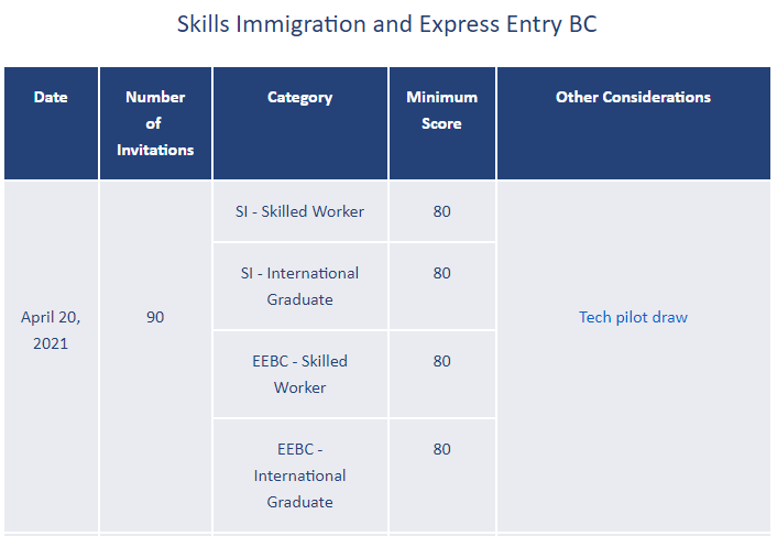 加拿大當地時間2021年4月20日,BC PNP發出了新一輪邀請。