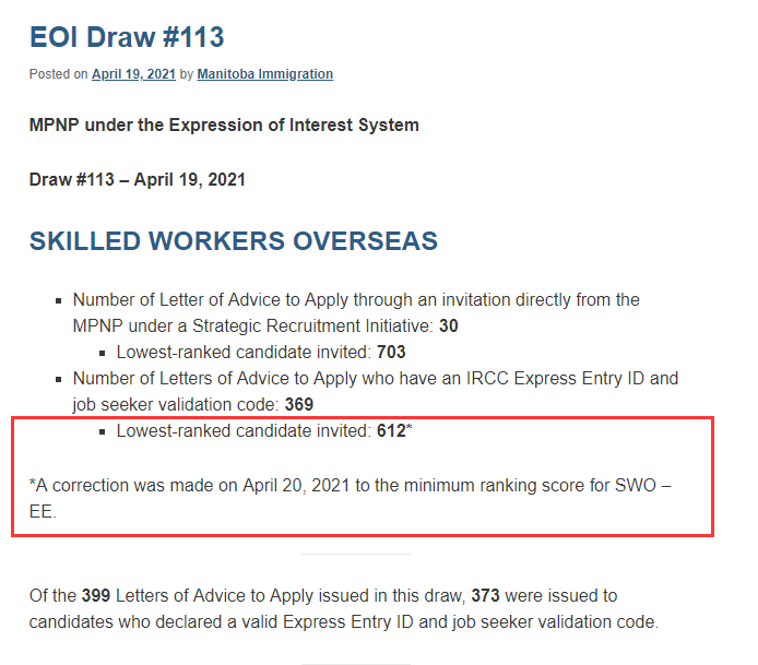 曼省總共在此抽簽中簽發(fā)了399份建議書(LAA),其中373份簽發(fā)給快速通道候選人。將在后續(xù)的EE快速通道中獲得額外600分。