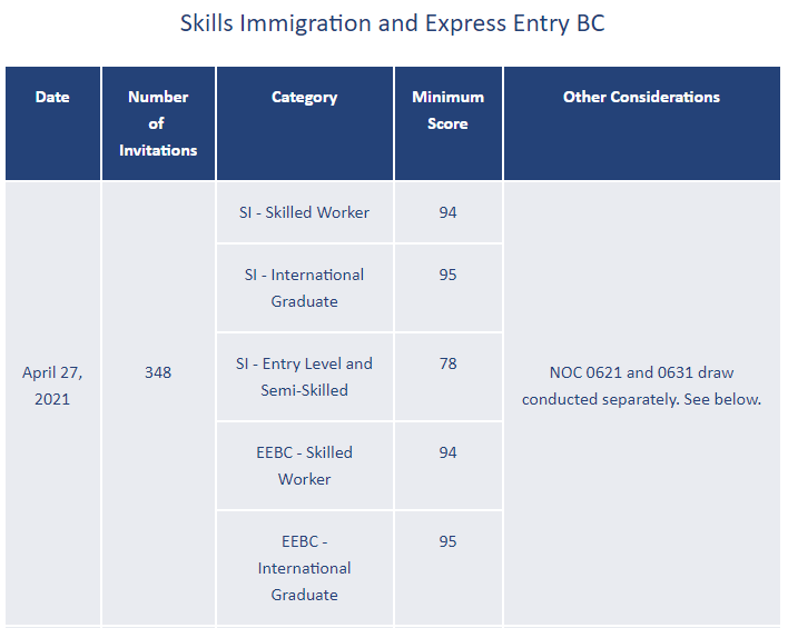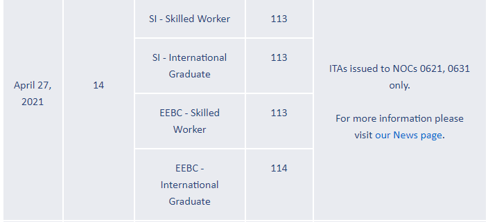 加拿大當(dāng)?shù)貢r(shí)間2021年4月27日,BC省PNP發(fā)出了新一輪邀請(qǐng)。