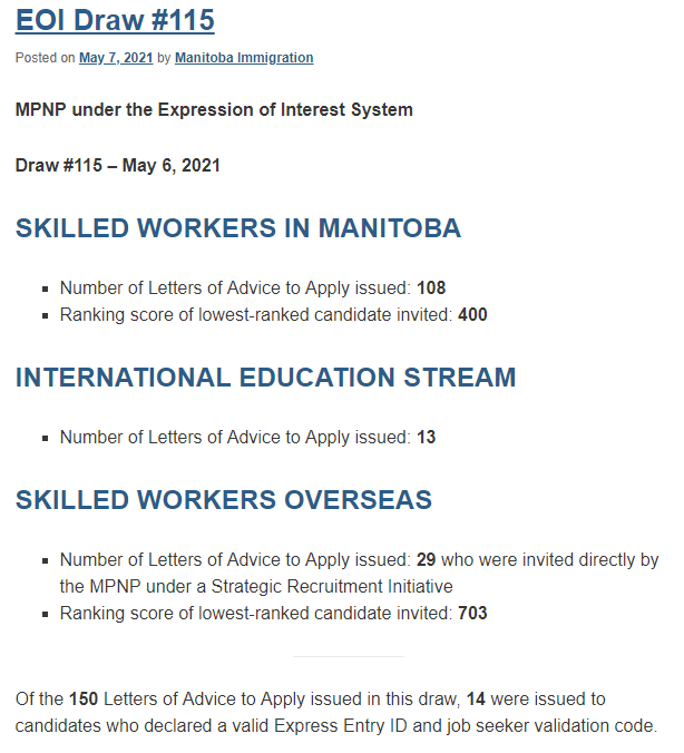 加拿大當(dāng)?shù)貢r(shí)間5月6日曼省省提名第115輪邀請按時(shí)公布。