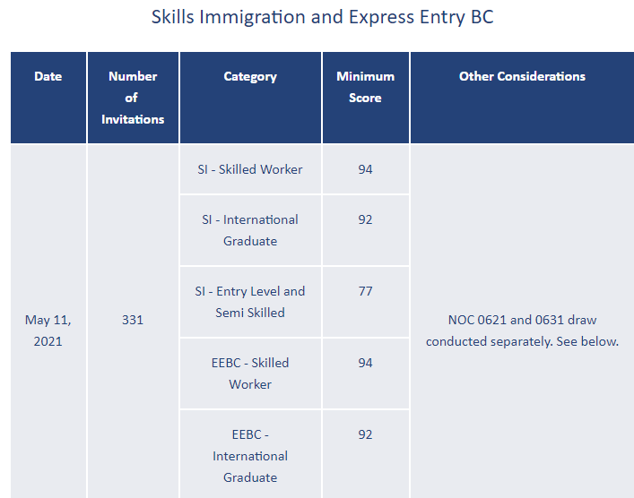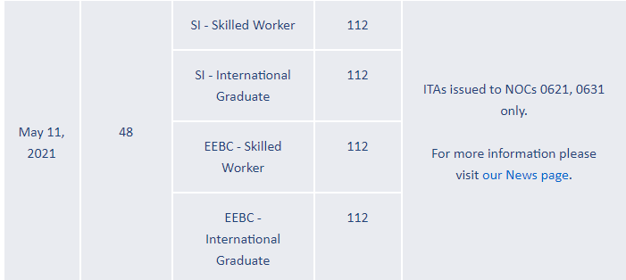 加拿大當地時間2021年5月11日,BC PNP發出了新一輪邀請。