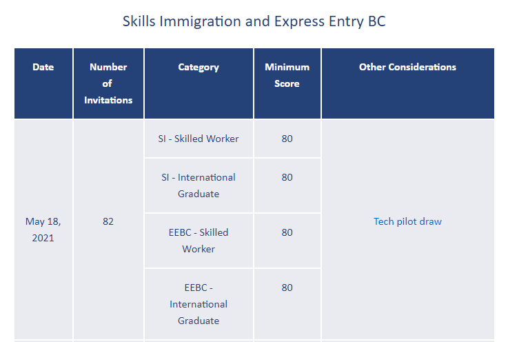 加拿大當地時間2021年5月18日,BC PNP Tech Pilot發布最新一輪抽分結果。