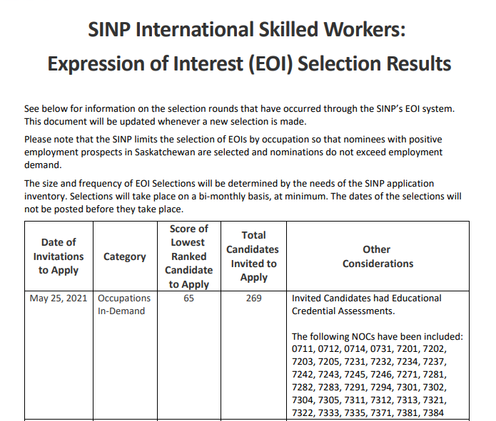 加拿大當地時間2021年5月25日,薩省技術移民又進行了新一輪的邀請,但此次邀請僅針對OID類別,接下來看看此