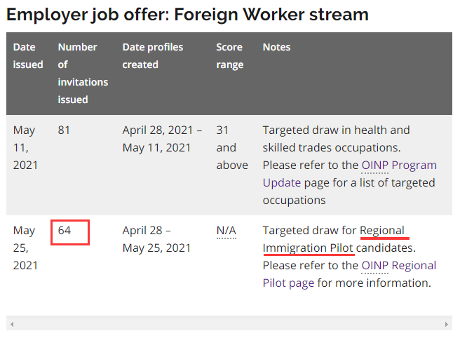 加拿大當?shù)貢r間5月25日,時隔兩周,安省再次向雇主擔保-海外工人項目符合條件的申請人發(fā)放邀請。本次邀請僅針對安省區(qū)域試點計劃的候選人,邀請人數(shù)為64人。