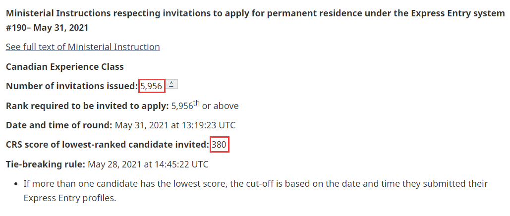 加拿大當地時間5月31日,時隔五天,聯邦EE發布了第190輪邀請,本輪邀請僅針對經驗類移民類別(CEC類申請人)。