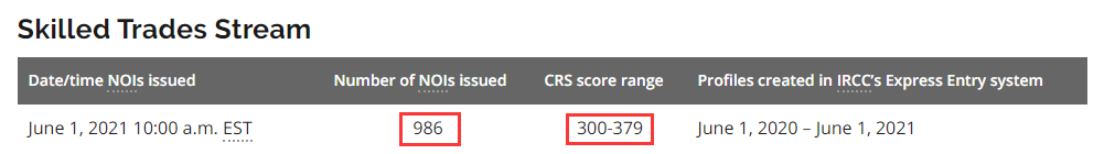技工移民類別邀請(qǐng)分?jǐn)?shù)區(qū)間:300-379分;邀請(qǐng)人數(shù)986人;