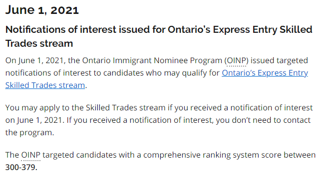 加拿大當(dāng)?shù)貢r(shí)間2021年6月1日,安省政府OINP發(fā)出技工類別 Skilled Trades邀請(qǐng)。