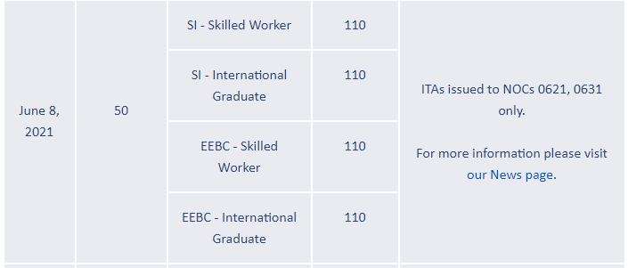 加拿大當(dāng)?shù)貢r間2021年6月8日,BC PNP發(fā)出了新一輪邀請。