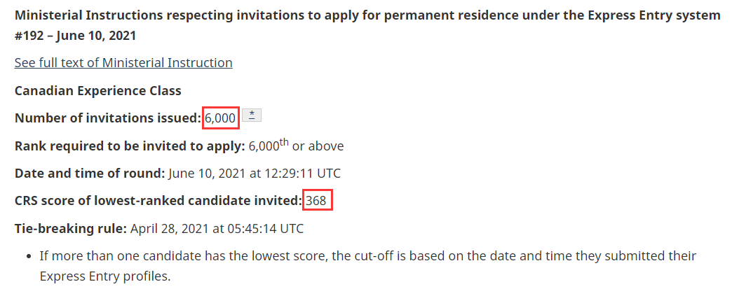 加拿大當(dāng)?shù)貢r(shí)間6月10日,聯(lián)邦EE發(fā)布了第192輪邀請(qǐng),本輪邀請(qǐng)僅針對(duì)經(jīng)驗(yàn)類移民類別(CEC類申請(qǐng)人)。