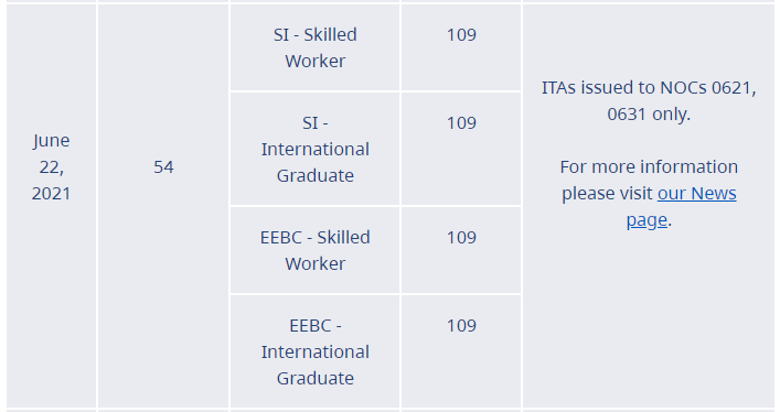 加拿大當地時間2021年6月22日,BC PNP發出了新一輪邀請。