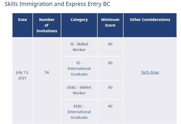 加拿大當地時間2021年7月13日,BC PNP Tech 發布最新一輪抽分結果。