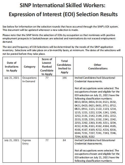 【SK】薩省技術移民無雇主類別7月21日最新抽分結果公布!