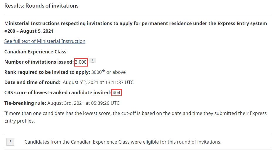 加拿大當(dāng)?shù)貢r(shí)間8月5日,聯(lián)邦EE發(fā)布了第200輪邀請(qǐng),本輪邀請(qǐng)僅針對(duì)經(jīng)驗(yàn)類(lèi)移民類(lèi)別(CEC類(lèi)申請(qǐng)人)。