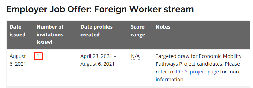 本輪雇主擔保項目海外工人類別發放了1份邀請,并且是針對EMPP項目的申請人發放。