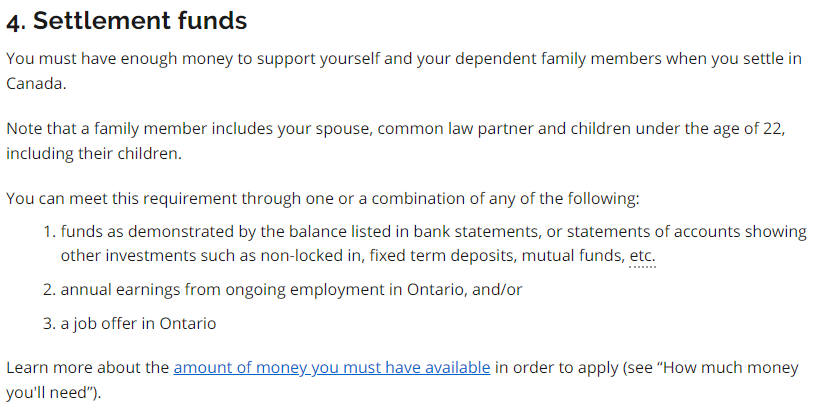 申請人必須有足夠的資金以支持自己和家人的開支。家人包括配偶(同居伴侶)及22歲以上的依附子女,及子女的子女。