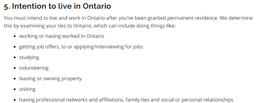 申請人必須有意圖居住在安省。對居住意圖的判定將參考: