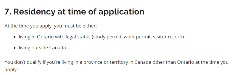 碩士:合法居住在安省或居住在加拿大境外。如果申請人在提出申請時居住在除安省之外的加拿大任意其他省份或地區,則不符合要求。