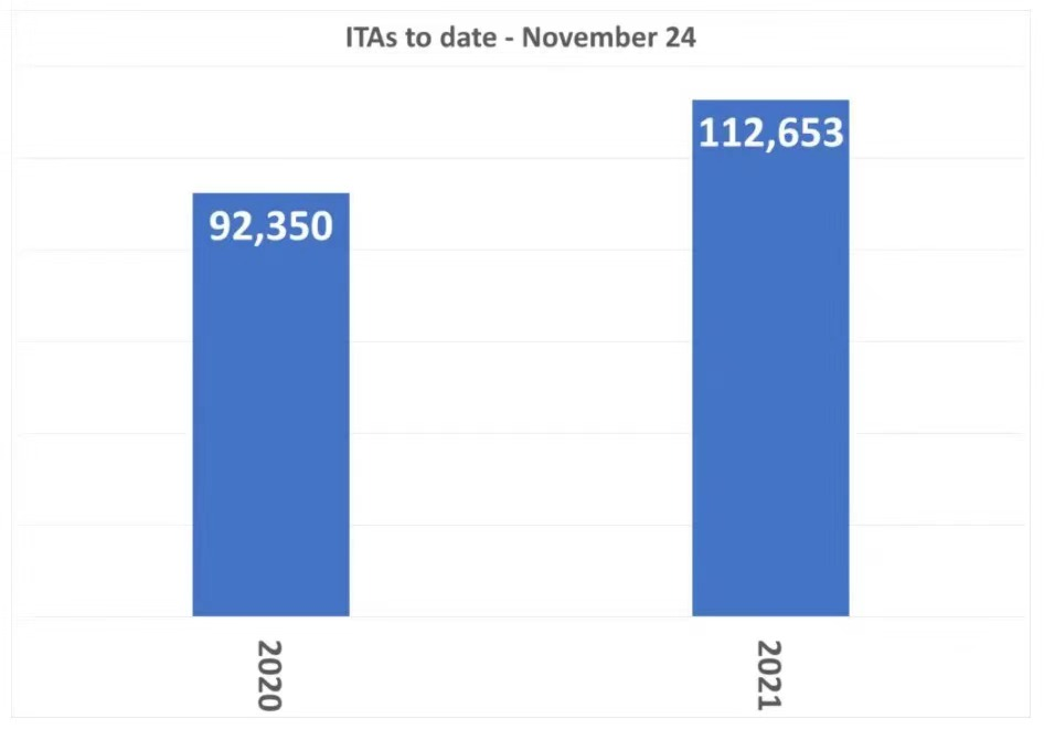 2020年聯(lián)邦移民局總共通過EE項(xiàng)目發(fā)放了107,350份邀請,而截至到今日,2021年聯(lián)邦移民局已發(fā)放了112,653份邀請,超過了本年度的移民目標(biāo),去年同期移民局只發(fā)放了92,350份邀請。