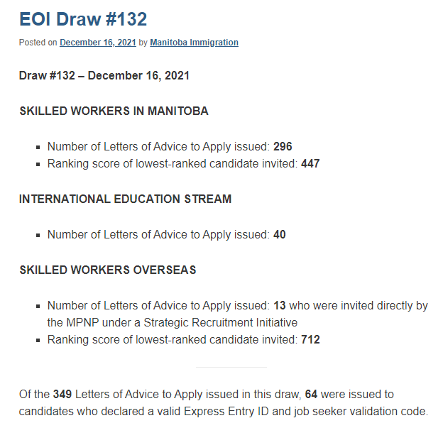 加拿大當地時間12月16日曼省省提名第132次邀請結果公布。