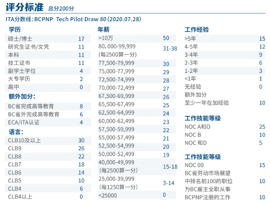 備注:以上為最低申請要求,由于BC PNP是優先評分制,所以各項分數越高越好