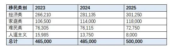 在新的水平計劃中設定目標,即在2023年有46.5萬名永久居民,2024年有48.5萬名,2025年有50萬人。