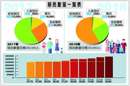 10月1日,聯邦移民部公布了未來三年的加拿大移民計劃﹐其中PGP移民配額2018年與今年持平,為2萬名,1萬名供“隨機抽簽”,1萬名額是用作清理積壓個案﹔2019年為20,500名﹔2020年為21,000名。