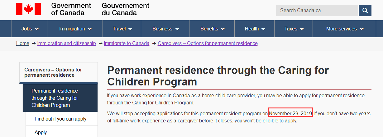 日前,加拿大移民部表示,將在2019年11月29日關(guān)閉外籍保姆移民通道,屆時,沒有完成兩年保姆工作時間要求的,將無法通過該通道申請加拿大永久居民身份。