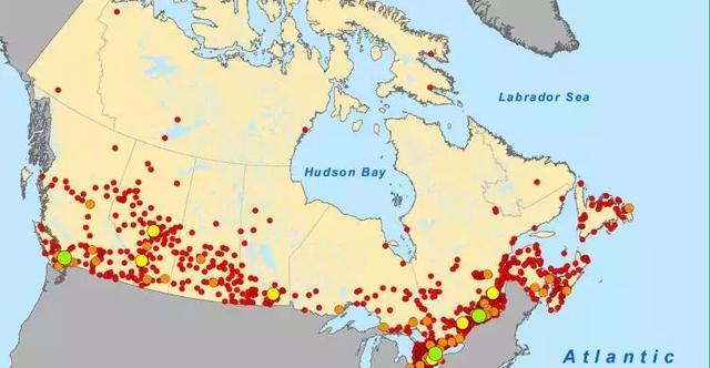 國土面積:在全球國土面積排行榜上,加拿大和澳大利亞分列第二位和第六位,而中國則正好在當中,排名第四。但與中國不同的是,加拿大有近1/3的國土被冰川和森林覆蓋,接近99%的人口居住在靠近加美邊境線附近的城市。