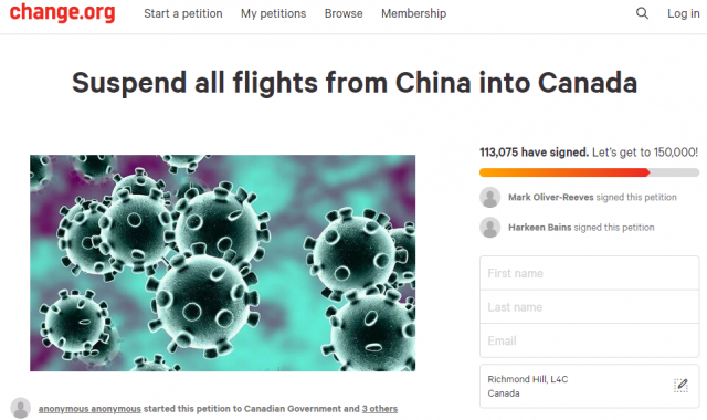 在國內疫情嚴峻,加拿大隨之出現確診病例時,華人們用盡全力以身作則,并呼吁政府采取措施防控疫情,包括買口罩戴口罩、減少外出就餐和購物、請愿停止航班、請愿強制自我隔離、請愿關閉學校等等。