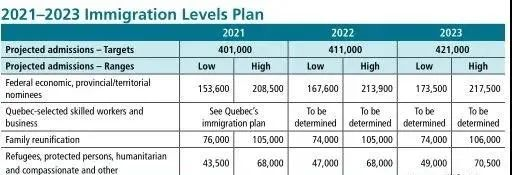 3. 受疫情影響沒完成的2020年移民指標將在未來三年彌補回來;