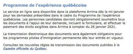除了費用上漲外,從2021年1月26日開始,魁省所有PEQ申請以及留學申請項目都必須在網上Arrima系統提交電子申請,紙質版申請將不再接受。