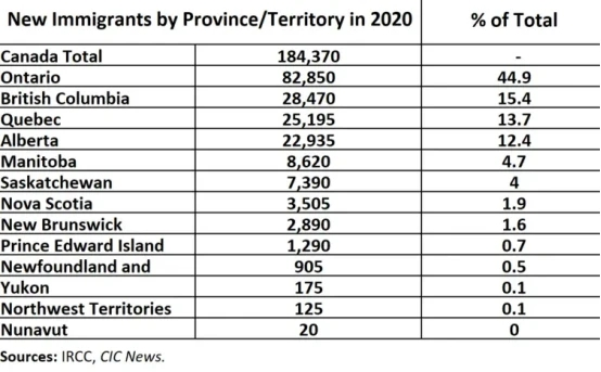安省2020年總共接收了82850名新移民,占加拿大新移民總?cè)藬?shù)的44.9%,這意味著,在所有省份中,該省份仍是新移民心中移民目的地的首選。