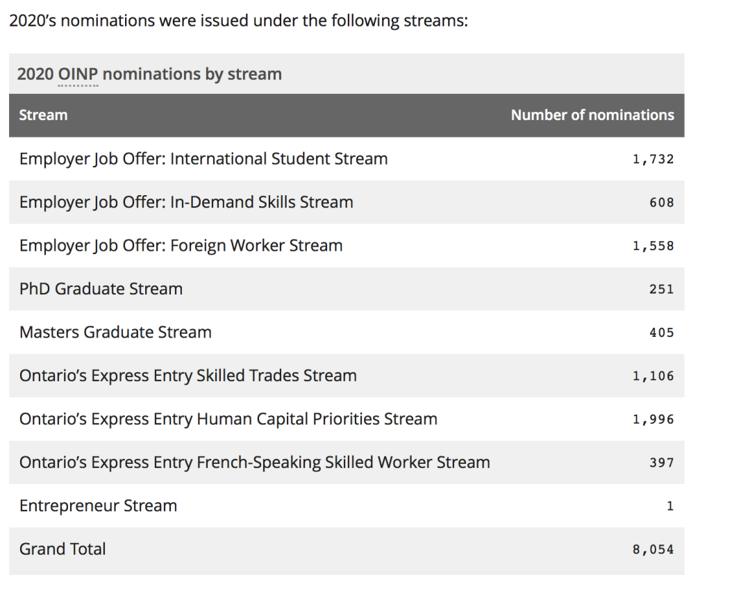 安省2018年實際發(fā)出省提名邀請6850份,2019年發(fā)出7391份,2020年發(fā)出總額8000多份,看起來書逐年提升的。但是和安省的人口數(shù)量,留學生人數(shù)相比,這個數(shù)字其實低得驚人。