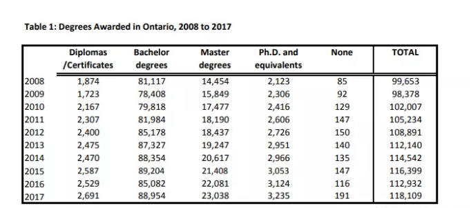 安省1300多萬人口,每年大學畢業(yè)生就有10幾萬,其中國際生比例更是逐年上漲,目前已超過15%,其中以中國和印度學生為主(目前約為75%),這些學生大部分有移民需求。每年安省大專院校(Post Secondary)的中印兩國畢業(yè)生約為12000-13000人。