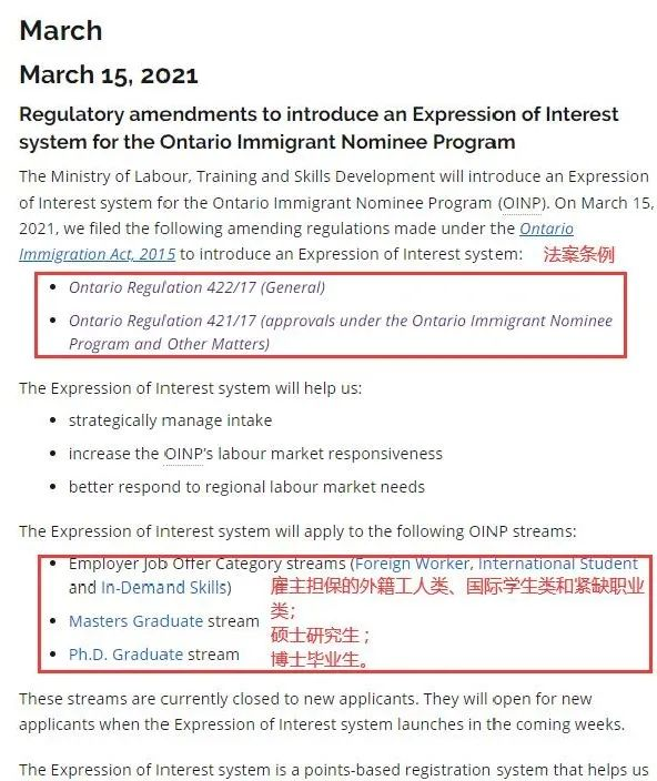 另外,安省省提名將正式上線EOI系統(tǒng),在全新的EOI機制下,申請人將先向OINP注冊入池,然后提供個人信息以及其他人力資本信息(如雇傭關(guān)系)進行評分,安省將根據(jù)池中候選人的情況及分數(shù)擇優(yōu)錄取并發(fā)出省提名邀請(ITA)。
