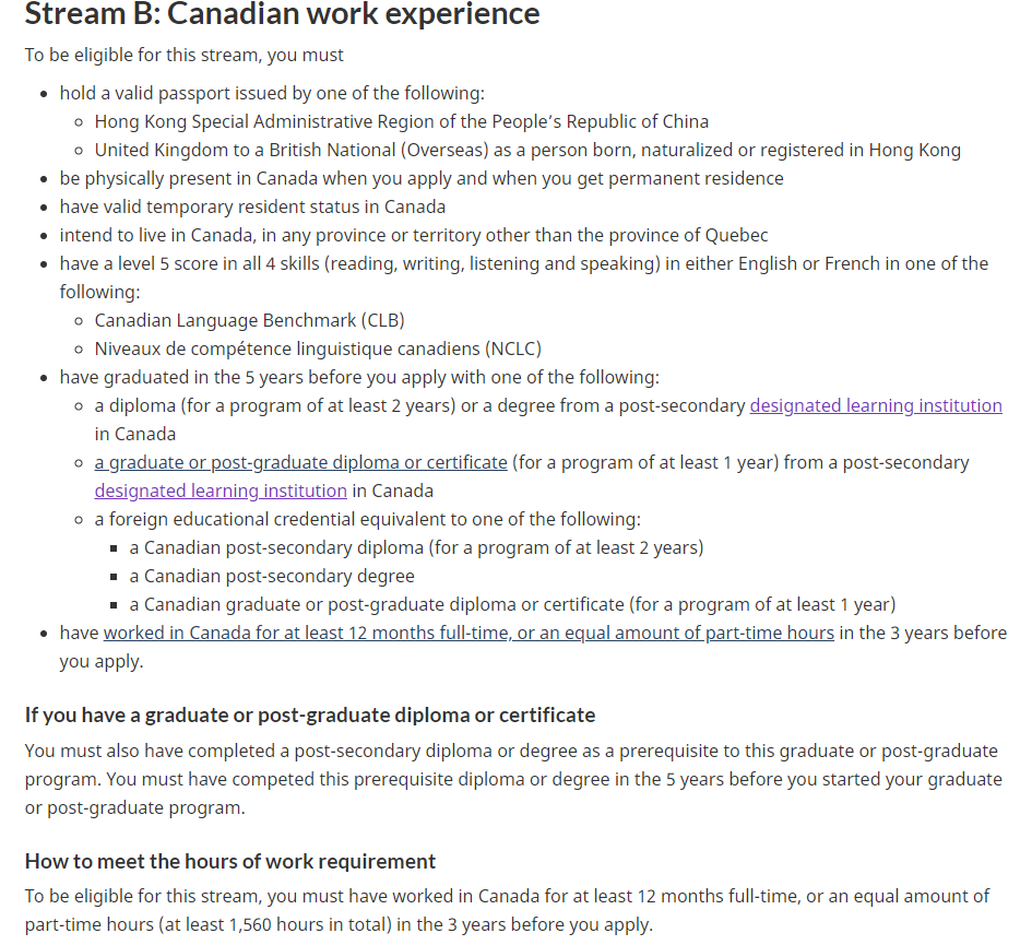 符合條件的申請人在提交申請時和獲得永久居留權時,都必須在加拿大并擁有有效的合法身份。另外必須滿足特定的語言、教育、工作和資格要求,并且必須遵守加拿大的常規移民申請和篩選程序以及受理要求。