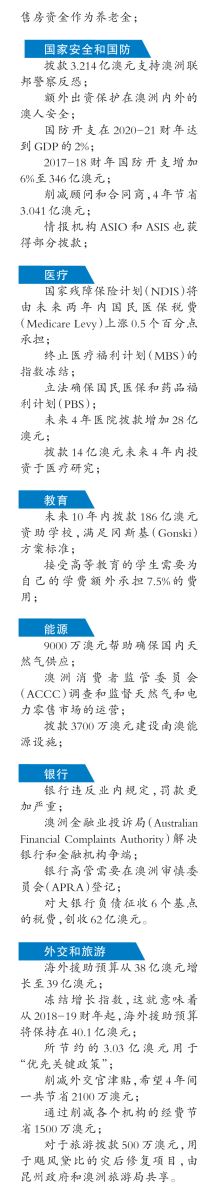 此次新預算案預測將在2020-21年實現74億的預算盈余。為了實現這一目標,政府將采取多種手段開源節流,五家大銀行面臨新稅、幾乎所有澳人的醫保稅都將上升、大學撥款削減、福利政策也會收緊。