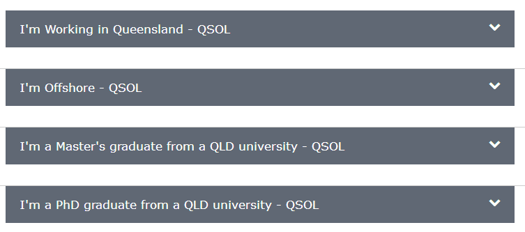 QLD新財(cái)年關(guān)閉了其他州interstate申請(qǐng)人的申請(qǐng)通道,即澳洲境內(nèi)非昆州的申請(qǐng)人不能再申請(qǐng)QLD190和489擔(dān)?!,F(xiàn)在有四類情況可申請(qǐng):在昆州工作、境外申請(qǐng)人、昆州碩士畢業(yè)生和昆州博士畢業(yè)生。