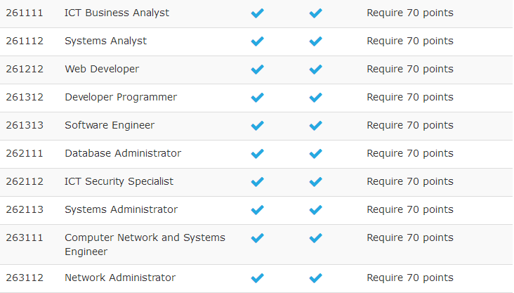 另外一個(gè)變化對(duì)于本州內(nèi)除PHD外的畢業(yè)生和在本州工作的申請(qǐng)人,部分職業(yè)的分?jǐn)?shù)要求從65分變更為70分,如會(huì)計(jì)、IT類的熱門職業(yè)。