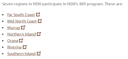 NSW190暫時(shí)仍為關(guān)閉狀態(tài),但新州7個(gè)地區(qū)的489申請(qǐng)均已開放。