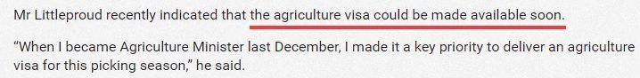 “農業嚴重缺乏人手,尤其是采摘,新簽證有助于解決這個問題。”
