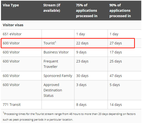 大部分人會申請的600旅游簽證,90%的審理期需要27天,與上月持平。