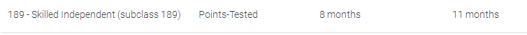 189簽證審理速度和上月一樣,75%的申請需8個月審理完成,90%的申請需要11個月。