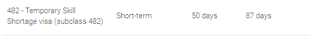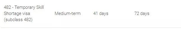 482簽證 Short-Term 分支75%的申請可以在50天內審理完成;Medium-Term 分支 75%的申請在41天內審理完成。