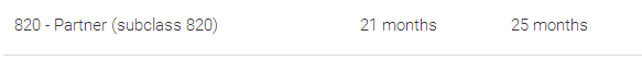 820/801簽證所需時間整體變化不大。90%的820簽證和801簽證都需要25個月審理時間。