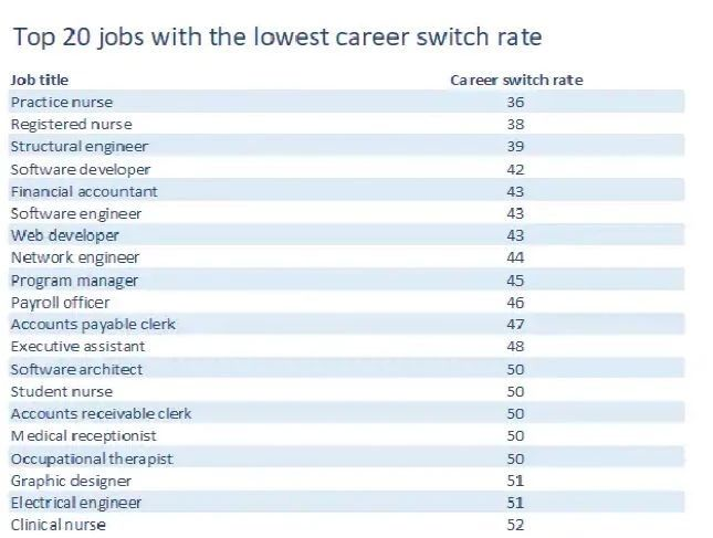最不可能轉(zhuǎn)行的20個(gè)職業(yè)中,大部分都是專業(yè)工作。