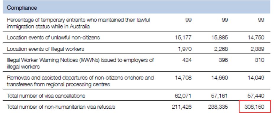 根據澳大利亞移民局《2017-18年年度報告》,2017-18財年,簽證拒簽的總數是308,150個,比上財年增加近30%。