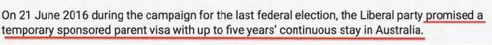 其實早在2016年6月21日,在上次聯邦選舉的競選期間,自由黨就承諾提供臨時父母簽證,可以在澳大利亞連續逗留長達五年,大家對此都滿懷希望。