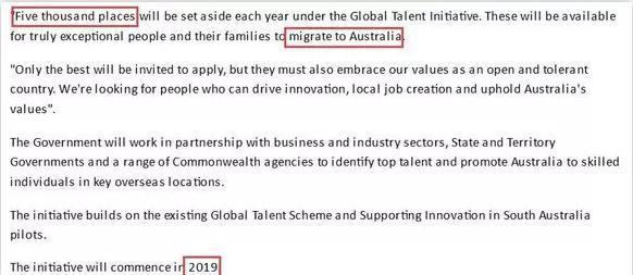 在2018年底,澳洲政府打算推出一種全新的簽證(分支) - Global Talent Initiative,澳洲政府將為此投資上千萬,移民專家認(rèn)為澳洲政府是希望把全球最優(yōu)秀的精英吸引到澳洲來。