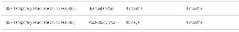 485簽證 Graduate Work 分支:簽證審理速度和上個月基本保持一致,75%的申請審理時間還是4個月,90%的審理時間是5個月。